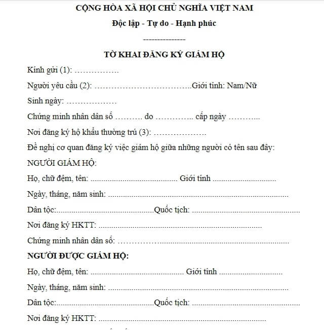 Mẫu tờ khai đăng ký giám hộ mới nhất năm 2026